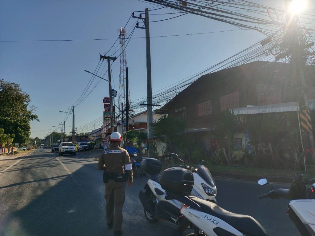 ร.ต.ต.พรมมา ศรีสง่า รอง สว(จร)ฯพร้อม ว30 จราจร ว4 อำนวยความสะดวกการจราจร ขบวนพาเหรดของเทศบาลตำบลศรีเมืองใหม่ ตั้งแต่ หน้า รพ.ศรีเมืองใหม่-วงกลมศรีไตรสาร การจราจรคล่องตัว