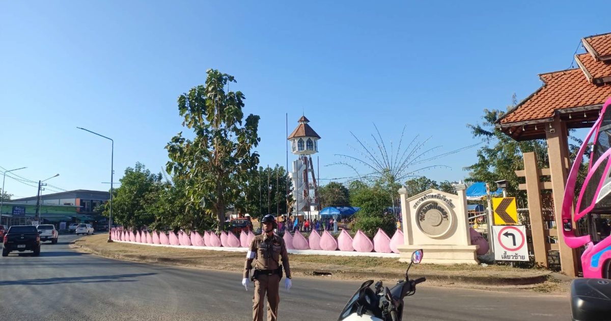 ร.ต.ต.พรมมา ศรีสง่า รอง สว(จร)ฯพร้อม ว30 จราจร ว4 อำนวยความสะดวกการจราจร ขบวนพาเหรดของเทศบาลตำบลศรีเมืองใหม่ ตั้งแต่ หน้า รพ.ศรีเมืองใหม่-วงกลมศรีไตรสาร การจราจรคล่องตัว