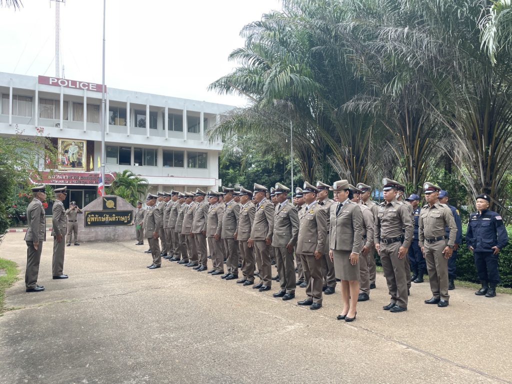 วันที่ (16 ต.ค.2567) เวลา 07.00 น. พ.ต.อ.ศักดิ์ชัย เกษโกมล ผกก.สภ.ศรีเมืองใหม่ นำข้าราชการตำรวจและ อส.ตร. ทำพิธีบูชาศาลพระพรหม และเข้าแถวเคารพธงชาติ พร้อมอ่านสารของ ผบ.ตร., กล่าวคำสัตย์ปฏิญาณตน และมอบใบประกาศเกียรติคุณให้แก่ข้าราชการตำรวจที่มีผลการปฏิบัติดีเด่นและผู้สนับสนุนกิจการตำรวจ เนื่องในวันสถาปนาสำนักงานตำรวจแห่งชาติ ณ บริเวณหน้าอาคารที่ทำการ สภ.ศรีเมืองใหม่